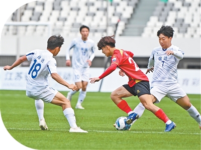 “苏超”首轮,苏州队与宿迁队在比赛中。