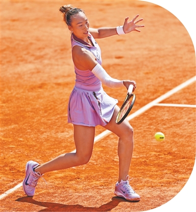6月3日,郑钦文在法网女单1/4决赛中回球。